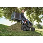 Das langlebige Mähdeck aus Stahlblech beinhaltet zwei Messer für einen sauberen Grasschnitt und kann mit einfachen Handgriffen ausgebaut werden. Dadurch sind eine schnelle Reinigung und ein zeitsparender Messerservice möglich. Durch den Fußhydrostat können Sie mit den ergonomisch angeordneten Pedalen und der optimalen Sitzposition ganz entspannt mähen. Das verbesserte Boxgestellt erleichtert das Ein- und Aushängen der Grasfangbox bzw. das Entleeren. Die breiten Reifen sorgen auf jedem Untergrund und in jedem Terrain für einen guten Grip und zügiges Vorankommen.